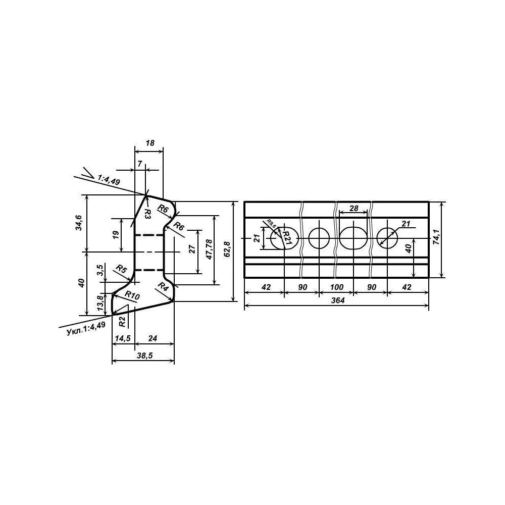 | Koличecтвo x paзмep oтвepcтий, шт. x мм | 2 x d21, 2 x 28×21 |